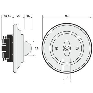 250 V/16 A, el paso mínimo entre centros de cajas de instalación oculta es de 100 mm (mínimo 95 mm), profundidad de la caja de 68 mm. Diseñado para paredes huecas y paredes sólidas. Añade la caja de cableado que no está incluida en el precio. Tenga en cuenta que se requiere una profundidad de caja posterior de 68 mm con este interruptor.