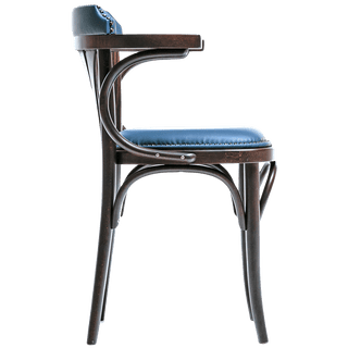 El Sillón Ton 56 está hecho de madera que se ha secado durante más de tres meses, según el tipo de madera, y luego se satura con vapor a 100°C para darle la forma de la silla a mano en moldes preformados. Luego, el acabado de tinte para madera (o natural) de su elección se procesará en las salas del tanque de inmersión. Una vez seco, la pieza se ensamblará a mano y se aplicará una laca transparente.